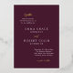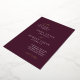 Elégante invitation de mariage avec un design typographique simple et minimal. Accents les mots sont dans une typographie de script, imprimé en papier réel et la disposition est décalée pour une touche moderne. Le modèle contient du texte au verso pour une invitation tout en un, ou vous pouvez supprimer le texte pour laisser le verso vide. La couleur arrière - plan est du vin de mûrier et vous pouvez modifier la couleur arrière - plan ou modifier tout le texte sur le devant pour le feuilleter dans l'outil de montage de conception. Ce design est parfait, que vous ayez un mariage informel ou formel.