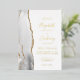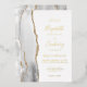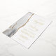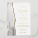Le bord gauche de cette élégante faire-part de mariage moderne est orné d'une bordure en aquarelle grise et blanche ornée d'une parties scintillant en faux or. Le texte personnalisable combine écriture manuscrite, copperplate et polices italiques en feuille d'or réelle sur un arrière - plan blanc. L'envers est assorti d'un design d'agate gris, blanc et or.