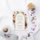 D'élégantes invitations à des mariages fleuris ou des mariages d'automne ou d'hiver présentent vos détails encadrés par une arche de roses d'aquarelle, de mamans et de verdure aux couleurs d'automne rustiques, y compris la pêche, l'ivoire, le rougissement, le bordeaux et le vert, avec des garnitures élégantes en feuille d'or. Un design moderne et élégant pour des mariages rustiques chic en automne ou en hiver.