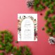 D'élégantes invitations à des mariages fleuris ou des mariages d'automne ou d'hiver présentent vos détails encadrés par une arche de roses d'aquarelle, de mamans et de verdure aux couleurs d'automne rustiques, y compris pêche, ivoire, rougissant, bordeaux et vert, avec des garnitures en feuille d'or et des scripts de calligraphie en or sur un arrière - plan blanc. Un design moderne et élégant pour des mariages rustiques chic en automne ou en hiver.