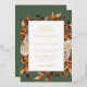 Cette élégante invitation de mariage présente une belle armature de boho aquarelle peinte à la main, feuilles d'orange brûlé et de terre cuite, dahlias crème et beige, et de beaux roses de couleur rouille sur un arrière - plan sage imprimé en feuille d'or véritable. Trouvez les articles correspondants dans la collection Sage Autumn Romance.