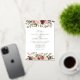 D'élégantes invitations à des mariages floraux ou des mariages d'automne ou d'hiver vous attendent dans un luxueux papier d'aluminium accentué par les bordures de haut et de bas des roses d'aquarelle, des mamans et de la verdure aux couleurs d'automne rustique, pêche, ivoire, rougissement, bordeaux et vert. Les cartes s'inversent vers un câble profond subtilement taché.