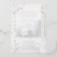 Un doux faire-part de mariage de bouleau blanc et argenté avec un arrière - plan boisé brumeux avec des bouleaux blancs purs au premier plan orné de pivoines blanches et de verdure d'eucalyptus argentés. Les parents de Mariée et Groom invitation les invités avec vos noms dans un script mariage classique modernisé en feuille d'argent. L'arrière de l'invitation ressemble plus à la couverture et comporte le prénom et les noms de famille de la Mariée et de la Chambre dans une police gris argenté. Le dos n'est pas de l'argent.