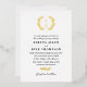 Elégante invitation de mariage dans une feuille d'or et la conception de typographie noire avec un monogramme de couronne de laurier et de belles polices. Faire-part de mariage typographique avec un monogramme verdoyant et de belles polices. Faire-part de mariage en feuille d'or monogramme avec un design stylisé typographique et verdure.