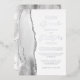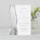 Le bord gauche de cette élégante faire-part de mariage moderne est orné d'une bordure en aquarelle grise, recouverte d'une parties scintillant en faux argent. Le texte personnalisable combine des polices de script et sans serif dans un véritable papier argenté sur un arrière - plan blanc. L'envers présente une conception d'agate correspondante.