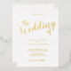 Suite Faire-part de mariage de script moderne : Faire-part de mariage Ce design comprend le titre en vrai feuille d'or police de script moderne avec détails mariages en vrai feuille d'or police moderne sans serif sur arrière - plan blanc.