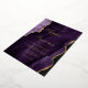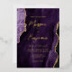 Cette élégante invitation de mariage présente une image arrière - plan d'agate d'aquarelle violette parée de parties scintillant en faux or. Le texte personnalisable en feuille d'or réel combine écriture manuscrite moderne, copperplate et polices italiques. L'envers présente un design coordonné d'agate violet et or.