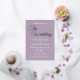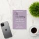 Faire-part de mariage de style simple sur un arrière - plan de couleur mauve et tendance avec "Le Mariage" imprimé en script stylisé avec couleur feuille de votre choix. Modifiez le nom, la date, l'emplacement, etc., avec vos propres informations imprimées en lettres blanches. Conçu pour coordonner avec notre collection Mauve Simple Style Mariage.