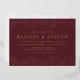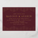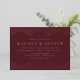 Faire-part de mariage moderne et design avec vos noms et détails mariages en papier peint doré bordé d'un design géométrique pointillé avec un arrière - plan bordeaux. Les invitations de mariage en feuille d'or sont parfaites pour les mariages décontractés et formels.
