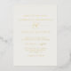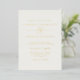 Cette élégante invitation de mariage présente un design moderne minimaliste dans une crème légère avec une véritable typographie de feuille d'or. L'envers est un bleu marine riche. Personnalisez avec tous vos détails importants, y compris le nom de la mariée et du marié, la date du mariage, l'heure et l'emplacement.