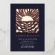 Flore Chic Retro, Faire-part de mariage Foil. Fleur de style rétro, aux arrière - plans bleu marine.