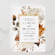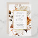 Invitations mariages de automne rustiques avec des fleurs d'automne aquarelle et le feuillage dans les tons ivoire, crème, orange et marron. Vos détails mariages sont encadrés par une bordure en feuille d'or. Les invitations de mariage en feuille de papier sont parfaites pour les mariages de automne. Conçu pour coordonner avec notre collection Rustique de mariages floraux d'automne.