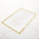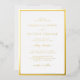 Simple, élégant et moderne, ce faire-part de mariage formel présente une bordure classe et un élégant script de calligraphie pressé dans une véritable feuille d'or.