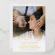 Simple et belle double face deux en un faire-part de mariage photo avec votre photo couvrant la carte d'invitation de mariage. Rejoignez-nous pour le mariage de est écrit sur la moitié inférieure de votre photo avec mariage dans un magnifique script de calligraphie imprimé en feuille d'or. Vos noms en feuille d'or aussi. De l'autre côté, ajoutez une autre photo et des informations mariages supplémentaires dont vos invités auront besoin.