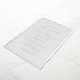 Invitation Mariage gris argent Foil. Simple et élégant, ce faire-part de mariage formel présente une bordure classe et un élégant script de calligraphie pressé dans un véritable papier argenté.