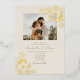 Annoncez votre union dans un style intemporel avec nos invitations de mariage d'inspiration vintage, une fusion d'élégance et de charme boho moderne. Conçu dans une crème d'ivoire luxueuse, chaque invitation présente de véritables accents de dentelle fleurie en feuille d'or, évoquant un sentiment d'amour vintage. Le script de calligraphie simple ajoute un air de sophistication, tandis qu'une photo du couple ajoute une touche personnelle, capturant l'essence de votre histoire d'amour. Invitations vos invités à partager votre joie avec ces invitations exquises qui donnent le ton pour une célébration à retenir.