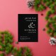 Invitation de Save The Date de mariage moderne en or noir personnalisé avec feuille d'or.