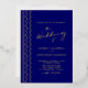 Le tout en un Boho moderne Motif en tissu de boue Calligraphie or Faire-part de mariage... Inspiré par les motifs textiles africains en tissu de boue, notre faire-part de mariage unique "All in One" présente un motif tribal spectaculaire en feuille d'or véritable sur un arrière - plan bleu marine à côté de votre texte d'invitation dans un script de calligraphie moderne et une élégante typographie serif. Le verso de l'invitation contient tous les détails que vous verriez généralement sur des cartes séparées dans le paquet mariage. Tous les exemples de texte (sauf les éléments de calligraphie graphique) peuvent être facilement révisés avec vos propres informations sur le modèle de personnalisation.