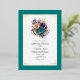 Invitation mariage turquoise, violette et or à fleurs personnalisable selon les caractéristiques de votre événement.
