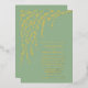 Faire-part de mariage doré orné dans un vert de sauge clair avec branches de saule doré et texte personnalisé. Personnalisez le texte du feuillet pour répondre à vos besoins mariages.