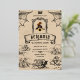 Cette invitation sur le thème médiéval présente un fond semblable à un parchemin orné d'illustrations antiques de dragons, de chevaliers et de créatures mythiques. Une arcade centrale ornée encadre un petit dragon stylisé perché au-dessus d'un soleil noir ou d'un vide. Le texte est élégamment stylisé dans une police serif rappelant la calligraphie, avec une bannière proclamant l'âge du célébrant d'anniversaire. L'esthétique globale est fantaisiste et aventureuse, parfaite pour une célébration sur le thème de la fantasy. La palette de couleurs est atténuée, utilisant des tons sépia et des bruns pour renforcer l'aspect antique. L'invitation détaille une fête le 14 août 2025 à 16 heures. Les informations de RSVP sont également incluses.