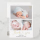Carte de remerciements moderne, 4 photos faire-part de naissance bébé, avec un élégant script de brosse à la main cool et le coeur et des couleurs modifiables sur le blanc avec de la feuille d'or réelle. Ajoutez 4 de vos photos préférées pour bébé.