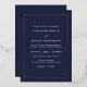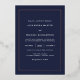 Ces invitations de mariage modernes et élégantes présentent du texte blanc sur un arrière - plan bleu nuit foncé, avec une bordure rose en feuille d'or.