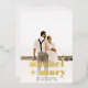 Modern bold script names save the date wedding photo announcement with real gold foil. A cool, simple and minimalist save the date.