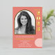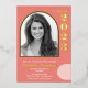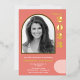 Les invitations à la fête de remise de diplômes de Modern Mod arches avec une photo du diplômé. Dispose d'une véritable feuille d'or (à l'avant). Changez la photo avec votre photo et elle la changera automatiquement en noir et blanc. Jolies couleurs de corail et rose vif, mais vous pouvez changer les couleurs si nécessaire et n'importe quel texte !