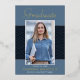 Une carte de faire-part de graduation photo unique, avec des éléments de design d'élégant script de style manuscrit. Le mot "Graduate" et le nom des finissants dans le papier à feuilles réelles (les options de couleur de papier sont or, argent et rose). La photo des finissants est bordée d'une bordure blanche et d'une garniture ondulée décorative. Le design est complété par un arrière - plan dans les tons bleu poussiéreux. Le dos de la carte offre un espace de texte personnalisé pour ce diplômé spécial. Pour voir d'autres articles comme celui-ci, visitez mon magasin ici à "www.Zazzle.com/LakeViewCardCo". Merci