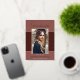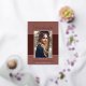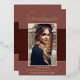 Une carte de faire-part de graduation photo unique, avec des éléments de design d'élégant script de style manuscrit. Le mot "Graduate" et le nom des finissants dans le papier à feuilles réelles (les options de couleur de papier sont or, argent et rose). La photo des finissants est bordée d'une bordure blanche et d'une garniture ondulée décorative. Le design est complété par un arrière - plan dans les tons de terre cuite. Le dos de la carte offre un espace de texte personnalisé pour ce diplômé spécial. Pour voir d'autres articles comme celui-ci, visitez mon magasin ici à "www.Zazzle.com/LakeViewCardCo". Merci