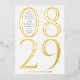 Cette carte de date moderne et audacieuse comporte la date de votre mariage en chiffres extra-grands dans le type de feuille d'or réel sur un arrière - plan blanc. Les noms du couple et l'emplacement du mariage sont affichés à l'intérieur du zéro pour les mois de janvier à septembre et à gauche du numéro un pour les mois d'octobre à décembre. Ce chic enregistrer la carte de date fera une déclaration et donne le ton pour votre mariage. L'arrière de la date d'enregistrement a de l'espace pour une photo pleine page.