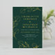 Belle feuille d'or simple eucalyptus sprig et feuille vert émeraude faire-part de mariage. Un design botanique simpliste et design sur un arrière - plan vert émeraude foncé. Écriture en feuille d'or moderne et typographie blanche avec modèle facile d'utilisation pour créer une invitation unique en do-it-yourself mariage numérique et imprimable. Un design botanique minimaliste, facile à personnaliser avec le modèle. OEuvre originale de l'artiste Catherine Sweetman