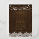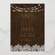Moderne rustique enregistrer la date avec la texture faux bois de barnwood, et feuille de golf calligraphie manuscrite moderne, dans un design élégant, simple, avec des lumières scintillantes et dentelle. Copyright Anastasia Surridge Designs, tous droits réservés.