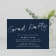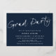 C'est une invitation moderne et simple à la fête de remise de diplômes. Il utilise un design manuscrit minimaliste en bleu et blanc classique avec "Grad Party" en papier argenté élégant. Veuillez contacter le concepteur pour toute question concernant ce design.
