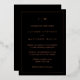 Faire-part de mariage simple en feuille d'or noir et rose avec un design moderne mais élégant avec votre monogramme à deux lettres en haut et vos détails entourés d'une fine bordure. Ce dessin est imprimé avec du papier or rose. Cette Faire-part de mariage de style minimaliste conviendra à une mariage à thème sombre et moody.
