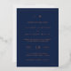 Faire-part de mariage simple avec un design moderne et élégant avec votre monogramme à deux lettres en haut, une mise en page audacieuse et vos détails entourés d'une fine bordure. Tous les éléments de conception sur l'avant sont imprimés avec de la feuille d'or rose sur un arrière - plan bleu marine. Une Faire-part de mariage chic et design qui conviendra à un couple minimaliste.