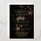 Parfait pour un mariage moderne, cette élégante invitation présente des fleurs profondes de tulipes de prune et des feuilles vert émeraude luxuriants contre un riche arrière - plan noir. Les luxueux lettrages et accents en feuille d'or pressé apportent une touche sophistiquée, créant un design floral sobre mais romantique.