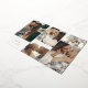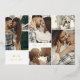 Double face enregistrer la carte de date avec un collage propre de cinq photos sur un côté avec vos initiales et la date mariage en feuille d'or, et une photo plus grande sur l'autre avec plus d'informations sur votre mariage. Moderne enregistrez la carte de date avec un design minimaliste, des polices élégantes et un collage photo. Blanc enregistrez la carte de date avec un design photo propre, vos initiales et la date mariage en papier doré.