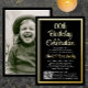 Famille Invitation et amis à une célébration élégante pour lui ou elle avec des invitations à la fête d'anniversaire photo sur mesure avec QR Code RSVP. L'image et tout le libellé de ce modèle sont simples à customiser. (CONSEIL EN MATIÈRE DE PLACEMENT D'IMAGE : Une façon simple de centrer une photo exactement comment vous voulez est de la rogner avant de la télécharger sur le site Zazzle.) Design propose une bordure en feuille d'or, une calligraphie en écriture vintage, une typographie de style typerwriter classique et une photo de votre choix. En scannant le code QR avec leurs téléphones, les invités sont envoyés directement sur le site du parti pour répondre à l'invitation. Un processus rsvp en ligne réduit le risque que les cartes soient perdues dans le courrier. Il est également plus polyvalent, en ce sens que vous pouvez demander des informations plus détaillées, comme les choix de repas, les allergies alimentaires et les demandes de chant. Toutes les informations de réponse peuvent être customisées ou supprimées. Cette invitation est une façon élégante de demander aux invités de répondre gentiment à votre prochaine célébration. Ce modèle de carte est facile à personnaliser pour n'importe quelle année ou type d'événement, et convient à un homme ou une femme. Joyeux anniversaire !
