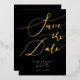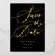 Élégant enregistrer la carte de date avec le texte de calligraphie écrit à la main qui dit "enregistrer la date" en or sur un arrière - plan noir. Vous pouvez ajouter une photo au dos.
