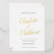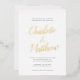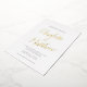 Ce design faire-part de mariage chic et simple présente un script de calligraphie moderne en feuille d'or, un arrière - plan blanc classique et une typographie élégante. Ce design élégant et simple est un choix fabuleux pour n'importe quel style de mariage. Vous pouvez customiser encore plus ce design en ajoutant une photo ou un texte supplémentaire à l'arrière-plan. Le pétrole est disponible en or, argent ou or rose et brille absolument ! Sélectionnez de vraies invitations de mariage pour ajouter ce facteur wow! !