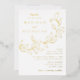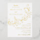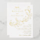 Invitations de mariage botanique avec vos noms et les détails mariages en feuille d'or divisée par une vigne de feuilles esquissés avec un arrière - plan blanc. L'élégante invitation de mariage en feuille d'or se coordonne avec notre collection de mariages Feuille en Cascade.