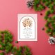 Arc rose doux véritable feuille d'or faire-part de mariage avec feuilles de palmiers séchés tropicaux, gazon de pampas et fleurs de protéa. Une arche en feuille d'or est placée sur un arrière - plan teinté rose doux. Un bouquet de feuilles de palmiers séchés, de fleurs de protéa et d'herbe de pampas est exposé dans le cadre.