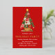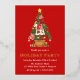 Invitations de fêtes en papier d'aluminium élégantes avec un arbre de Noël en patchwork festif orné d'ornements et entouré de cadeaux enveloppés. Personnalisez les invitations magiques à la fête des arbres de Noël avec vos détails de fête en feuille d'or et en lettres vertes. L'invitation revient à un arrière - plan blanc