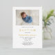 Photo personnalisée Religieux Croix Bleu Garçon Baptême Or Foil Invitation