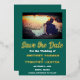 Moderne, QR Code, photo, vert émeraude, véritable feuille d'or Mariage Enregistrer la Date. Vous pouvez le personnaliser avec vos propres détails, modifier la photo et ajouter votre propre code QR.