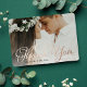 Partagez une belle photo de jour de mariage avec un élégant, merci titre dans un vrai papier d'aluminium. Vous avez le choix entre de l'or, de l'argent ou de l'or rose. Utilisez le dos pour inclure une autre photo et/ou écrire une note personnelle de gratitude.