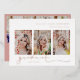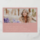Écriture de fin d'études, en feuille. Graduation 4 faire-part photo/invitation. Photo unique sur le dos avec couleur arrière - plan rose rose poussiéreuse et détails de l'invitation de célébration.