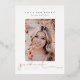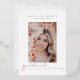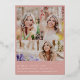 Écriture de fin d'études, en feuille. Graduation 4 faire-part photo/invitation. Photo unique à l'avant, 3 photos à l'arrière avec couleur arrière - plan rose rose poussiéreuse et détails de l'invitation de célébration.